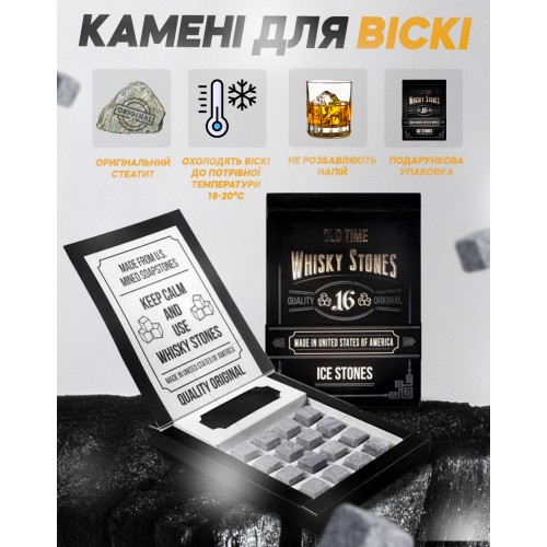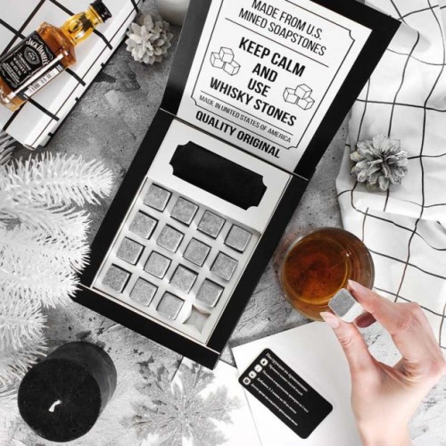 Камни для виски Vela Original Большая упаковка 16 шт. Кубики из стеатита + мешочек для охлаждения напитков в подарочной коробке Whiskey Stones Серые