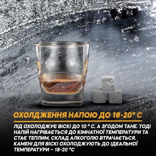 Камни для виски Vela Большая упаковка 16 шт. Кубики из стеатита + мешочек для охлаждения напитков в подарочной коробке Whiskey Stones Серые